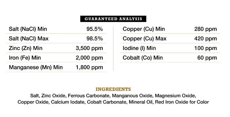 Trace Mineralized is our most popular trace mineralized salt in the western half of the U.S. With the six core micro-minerals required for animal health – zinc, manganese, cobalt, copper, iodine and iron – it’s the first choice for weight gain, feeding efficiencies and overall herd performance. Trace Mineralized Salt is appropriate for all classes of beef and dairy cattle, pigs and horses.