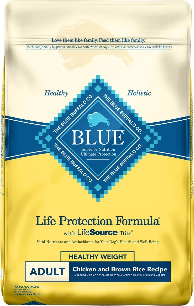 Formulated for the health and well-being of dogs, BLUE Life Protection Formula starts with high-quality deboned chicken and features wholesome whole grains and antioxidant-rich fruits and veggies. Formulated without the extra calories from fat, this recipe can help your dog maintain a healthy weight.