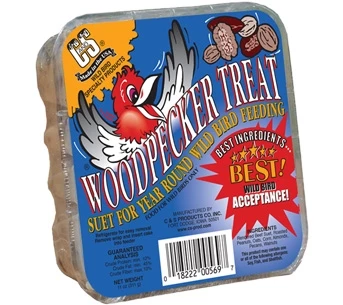 C&S Suet Treats are produced by melting the highest quality beef kidney fat, blending a variety of seeds, nuts, and fruits that are then poured into a tray and allowed to harden. Our Suet Treats will become soft and pliable at 100° F if exposed to extreme heat during shipping and storage, but will return to normal hardness again at room temperature. C&S’s quality and special processes allow our wild bird suet to be fed year round resulting in all season suet feeding success by our consumers.