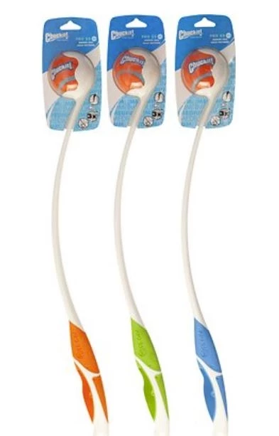Go long. No, really long. Really really long! With the Chuckit! Pro Launcher, you’ll easily be able to throw three times as far as normal, and without ever bending over or touching a slobbery ball again. Grab the comfortable handle, press down on the ball, and let it fly. You’ll wear Fido out in no time! Perfect for the dog park and wide open spaces. Not so great for studio apartments.