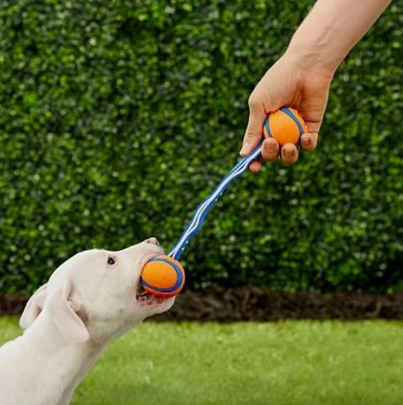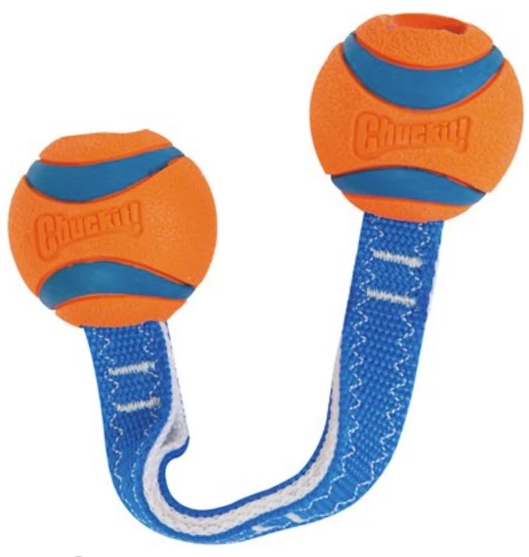 Take your fetch game to the next level with the Chuckit! Ultra Duo Tug. Featuring a durable cord that connects the two tennis balls, it’s made for extreme players with an ultra-high bounce and buoyancy. The durable design will hold up to tireless dogs that want to go again and again, and the bright orange and blue colors will make it easy to find every time. The flexible rubber edges are designed to go soft on your dog’s mouth, even during the most enthusiastic play—making it pure fun for everyone involved!