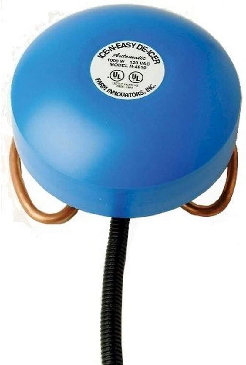 Traditional floating de-icer. This economical floating tank de-icer is designed for metal tanks only. Its thermostatic control operates only when necessary. Available in 1000 and 1500 watts.