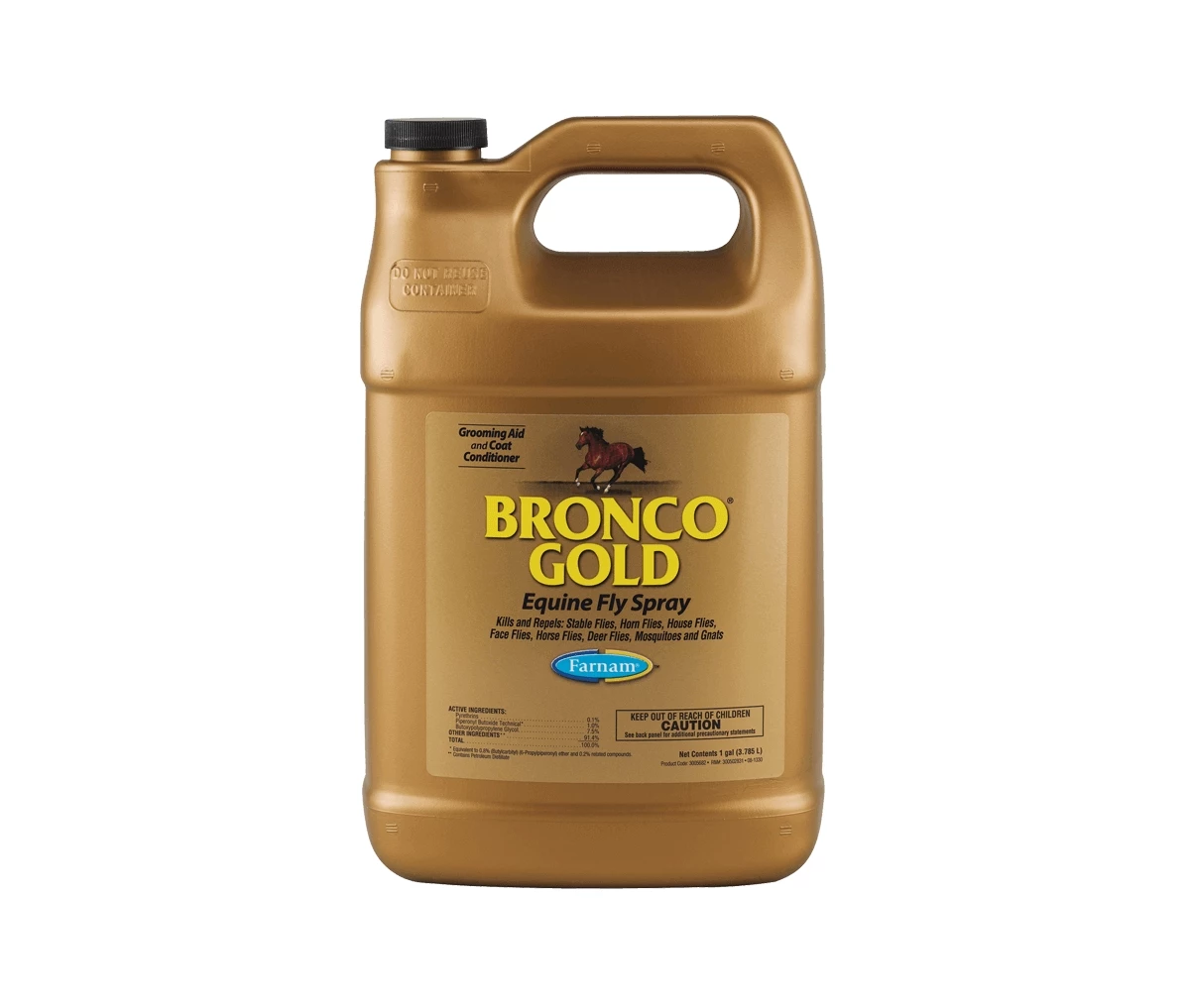 Bronco® Gold Equine Fly Spray guards your horse against pesky flies while giving him a healthy shine! Kills and repels six fly species, mosquitoes and gnats. Also doubles as a grooming aid and coat conditioner.