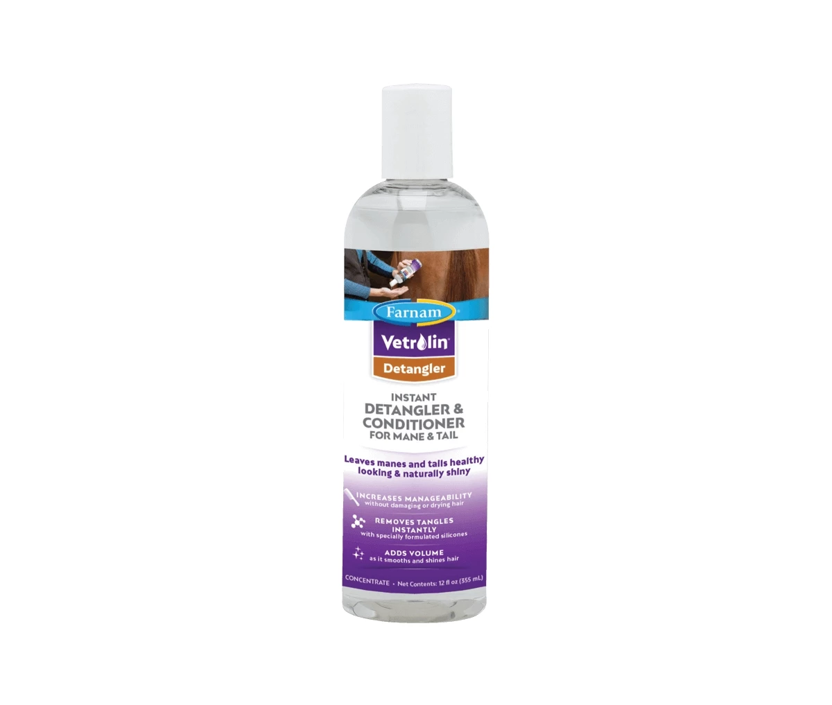 Pamper your horse from head to tail. Remove mane and tail tangles instantly with Vetrolin® Detangler. Proven formula leaves manes and tails healthy looking and naturally shiny.
