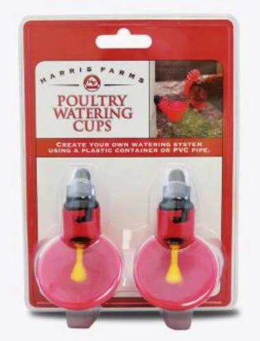 Harris Farms Poultry Watering Cups are easy to install and deliver a constant supply of fresh water. The nipple stem dispenses water to chickens automatically on contact. Compatible with both plastic and PVC.