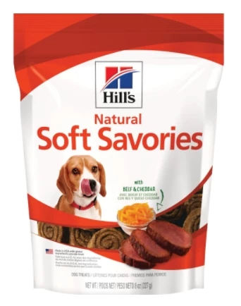 Hill’s Natural Soft Savories with Beef & Cheddar dog treats are delicious, natural and made from only the best ingredients. The soft and tender texture paired with a medley of fun rich flavors will make a dog happy. No artificial flavors or preservatives.