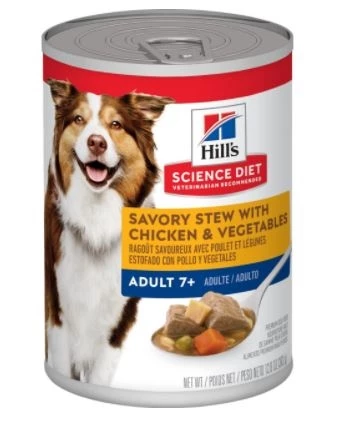Hill’s Science Diet Adult 7+ Savory Stew with Chicken & Vegetables dog food is formulated to meet the nutritional levels established by the AAFCO Dog Food Nutrient Profiles for maintenance of adult dogs.