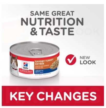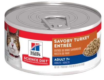 Animal feeding tests using AAFCO procedures substantiate that Hill’s® Science Diet® Adult 7+ Savory Turkey Entrée cat food provides complete and balanced nutrition for maintenance of adult cats