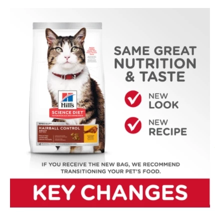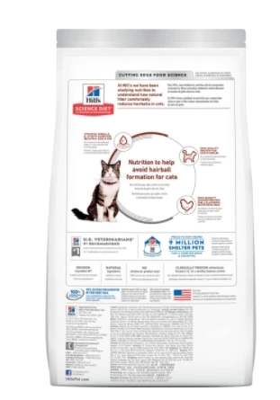 Hill’s® Science Diet® Adult Hairball Control cat food is formulated to meet the nutritional levels established by the AAFCO Cat Food Nutrient Profiles for maintenance of adult cats.