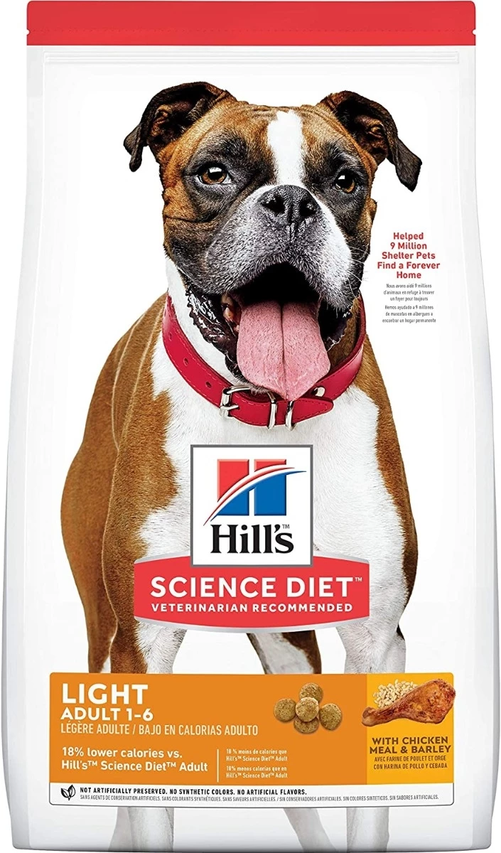 Hill’s Science Diet Adult Light Dry Dog Food provides your pup with precise nutrition for a healthy lifestyle. Made with wholesome ingredients such as savory chicken meal and barley, this nourishing recipe is balanced to meet your pet’s needs and contains 18% fewer calories than the Adult Advanced Fitness blend. Manufactured in the United States, every ingredient meets strict requirements for purity and nutrient content which exceed industry standards. Formulated for adult dogs 1 to 6 years of age that require fewer calories, this Hill’s Science Diet provides your pooch with the nutrition he needs for a lifetime of health and happiness.