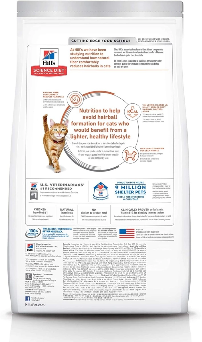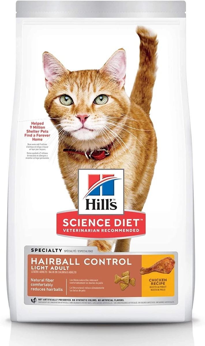 Hill’s Science Diet Adult Hairball Control Light Dry Cat Food provides your four-legged friend with great tasting nutrition for a long, happy life. Made with wholesome ingredients such as savory chicken, this nourishing recipe is balanced to meet your pet’s needs, reduce occurrence of hairballs and support healthy skin and coat. Manufactured in the United States, every ingredient meets strict requirements for purity and nutrient content which exceed industry standards. Formulated for adult cats 1 to 6 years of age who are prone to hairballs, this Hill’s Science Diet provides your cat the nutrition she needs for a lifetime of health and happiness