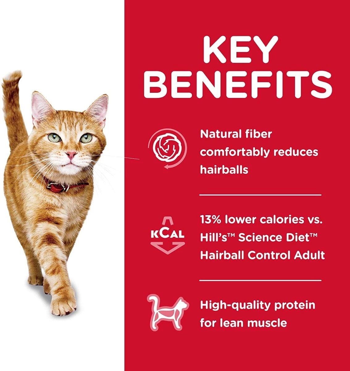 Helps avoid excessive weight gain and contains 14% fewer calories than the Adult Hairball Control recipe.