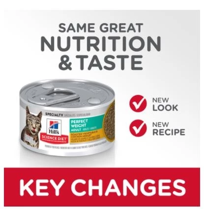 Animal feeding tests using AAFCO procedures substantiate that Hill’s® Science Diet® Adult Perfect Weight Roasted Vegetable & Chicken Medley cat food provides complete and balanced nutrition for maintenance of adult cats