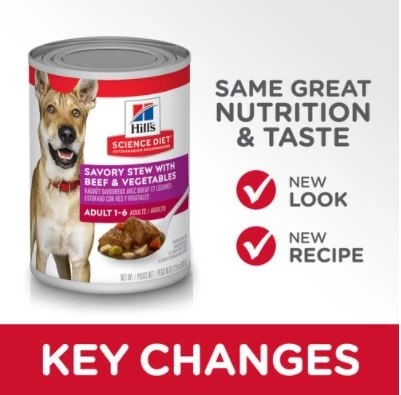 Hill’s® Science Diet® Adult Savory Stew with Beef & Vegetables is formulated to meet the nutritional levels established by the AAFCO Dog Food Nutrient Profiles for maintenance of adult dogs.