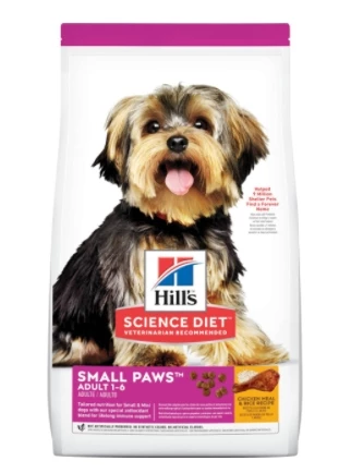 Big on Love, Small in Size.™ Hill’s® Science Diet® Small Paws™ Adult dry dog food is tailored nutrition for the unique needs of Small & Mini dogs during the prime of their life. Specially made with nibble size kibble.