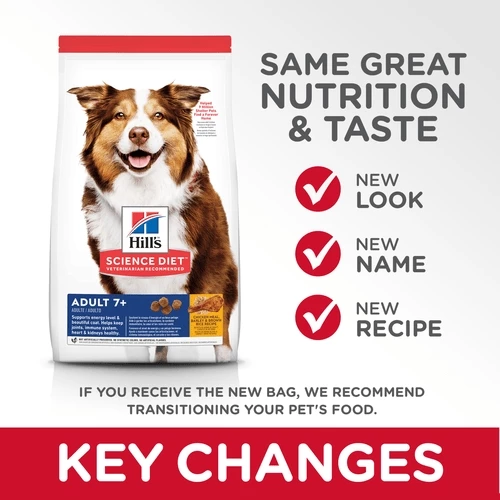Hill’s® Science Diet® Adult 7+ dry dog food is formulated for specific aging needs. Provides easy-to-digest nutrition with a synergistic blend of ingredients to help support energy & activity level.Â