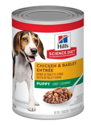 Animal feeding tests using AAFCO procedures substantiate that Hill’s® Science Diet® Puppy Chicken & Barley Entrée provides complete and balanced nutrition for growing puppies and gestating or lactating adult female dogs.