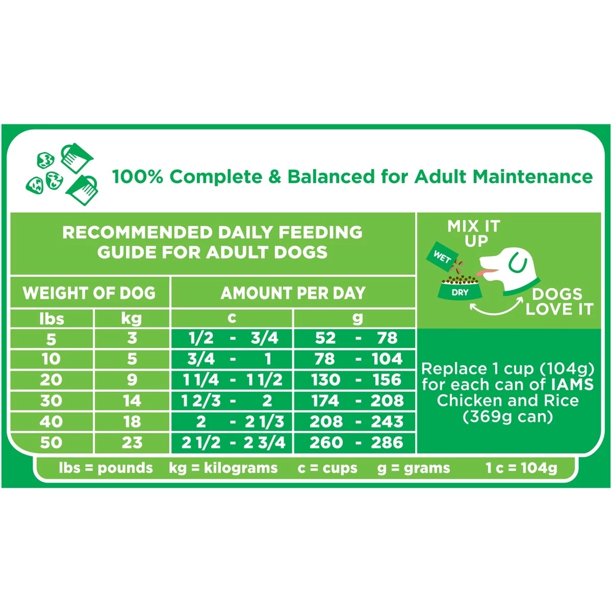 IAMS PROACTIVE HEALTH Adult Minichunks Dry Dog Food is veterinarian recommended and made with real ingredients. Our recipe starts with farm-raised chicken and includes wholesome grains and veggies. Plus, our quality, easily digestible ingredients provide your dog with a strong immune system; healthy skin, coat, and metabolism; and strong bones. The crunchy kibbles scrub your dog’s teeth with every bite, reducing plaque and bad breath. Look for the IAMS difference.