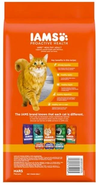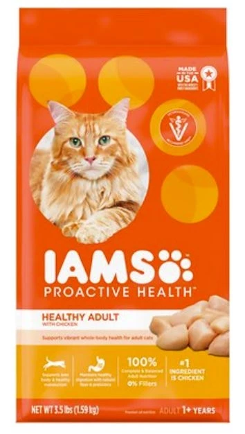 Help your cat feel her best every day with IAMS PROACTIVE HEALTH Adult Healthy Dry Cat Food with Chicken Cat Kibble. This recipe is crafted to support healthy cats’ bodies and provide healthy energy for daily adventures. Real chicken is the very first ingredient in this kibble, plus prebiotics to support digestive health and omega-6 and omega-3 fatty acids to support healthy skin and coat. The crunchy kibble texture not only tastes great, but helps reduce plaque buildup! Great for indoor or outdoor cats.