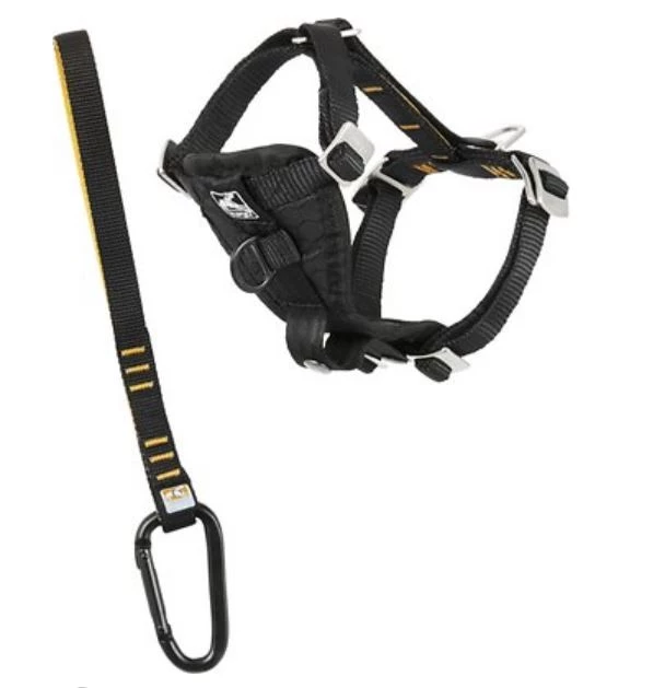Say goodbye to your dog’s Houdini act when you use the Kurgo Tru-Fit Enhanced Strength Crash Tested Smart Dog Harness. It’s a crash-tested dog car harness that keeps your dog safe while riding in the car. The all-steel Nesting Buckle System is based on the engineering for harnesses used by rock climbers and linesmen ensuring strength and safety. With five adjustments points, it’s easy to get a near custom fit for any dog, regardless of size and proportions. The chest pad reduces stress on the trachea and sternum while dispersing kinetic energy across the chest of the dog. This is important during those rare but dangerous impact crashes. The chest pad and straps are also very comfortable, making this dog car harness great as an everyday walking harness.