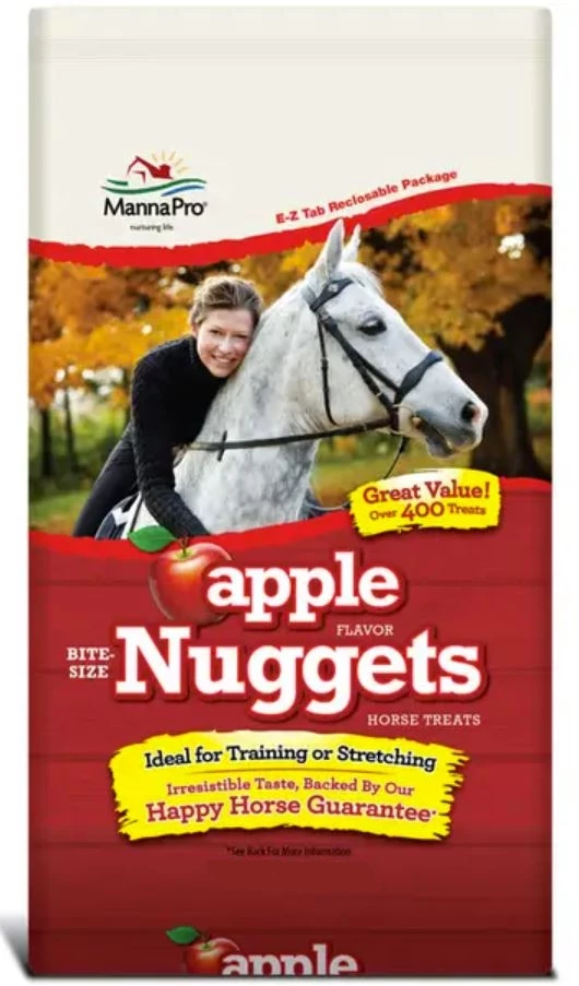 Because your horse holds a special place in your life, show him you care with Manna Pro Bite – Size Nuggets Horse Treats. Don’t give him sugary, no-value treats when you can offer him a great tasting, nutritious snack that’s good for him! Whether rewarding him for good behavior, thanking him for a nice ride, or just showing him that he can trust you. Manna Pro Bite – Size Nuggets Horse Treats convey your feelings.