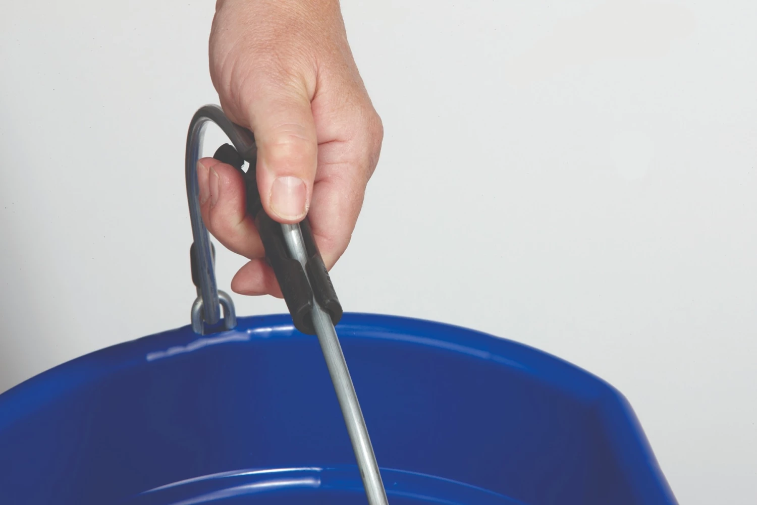 Carry your buckets comfortably and still hang them up! Ergonomic grips fit on standard v-handle buckets to reduce hand fatigue while still allowing bucket to be hung. Patented easy snap-on and snap-off design can be used with Little Giant plastic and rubber v-handle buckets and most wall brackets. Made of durable black polypropylene. Package of 3.
