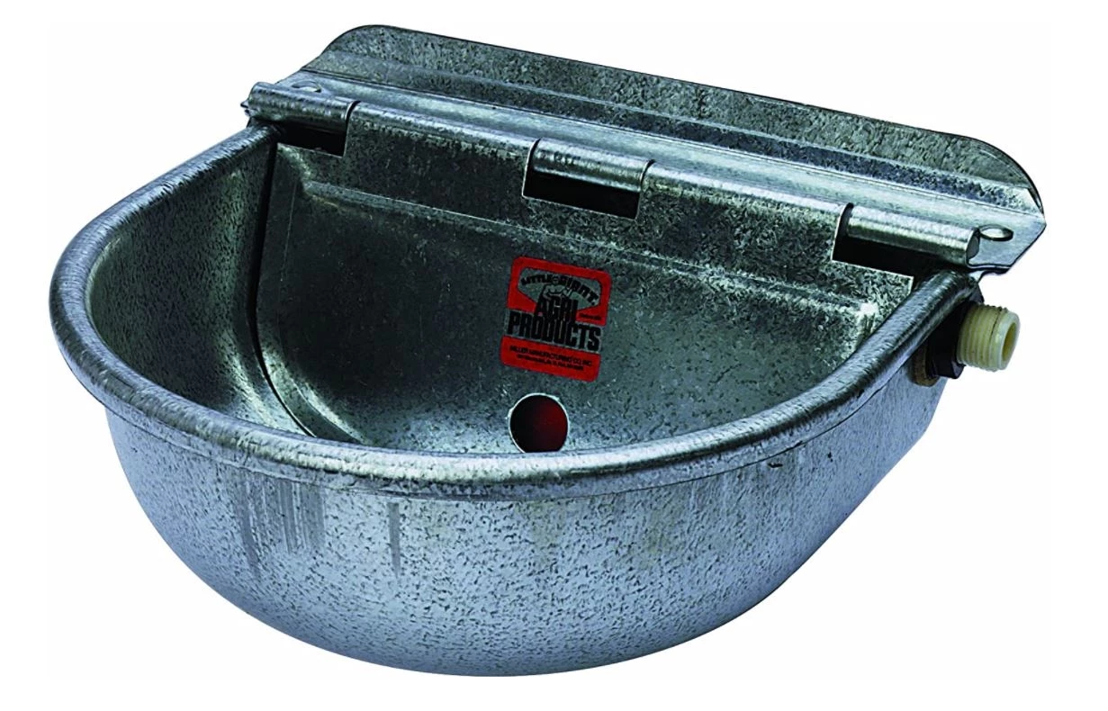 This dependable, all-purpose automatic waterer is easy to connect to pipe, flex hose, or garden hose water supply. Works well for horses, cattle, hogs, goats, and other outside animals, with no special training required. Not intended for use inside a home. Safely operates between 20 and 50 pounds per square inch pressure. Constructed from heavy-gauge, prime-quality drawn, galvanized steel. Can be easily installed at any height using lag bolts or through bolts. Mounting plates are included but other mounting and water connection hardware are not included. Recommended mounting hardware to fence: two 3/8 inch diameter bolts or two 3/8 inch lag screws. Mounting to a wall: two 3/8 inch lag screws. Will fit a 1/2 inch pipe or hose with a left or right connection. Measures 10 inch long by 10.75 inch wide by 5.5 inch high.