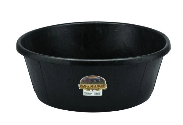 Molded from the finest corded rubber on the market, nothing matches the pliability and strength of DuraFlex rubber. Crush-proof, crack-proof, and freeze-proof so you can use it outside year-round. A great all-purpose tub that holds up to rugged use and abuse. Rubber is naturally safe and soft for animals. Perfect for large feeding jobs; also works great for many other jobs around the farm, ranch, garden, and shop. 26 inch diameter by 9.75 inch high, holds 15 gallons.
