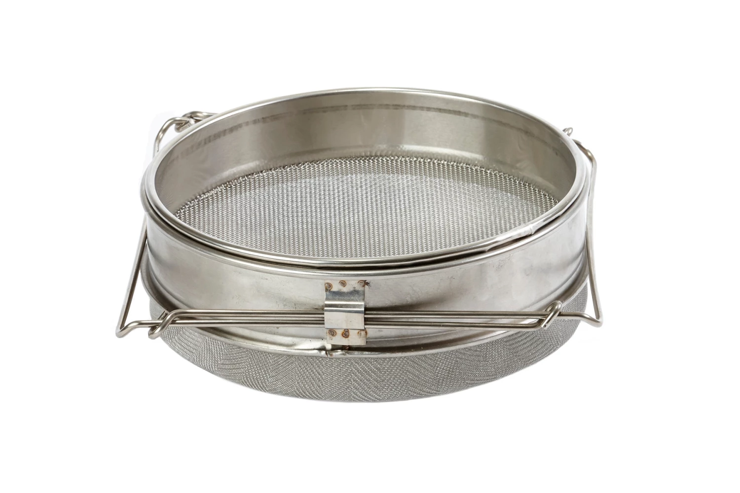 The Little Giant stainless steel honey strainer uses a fine mesh to remove any leftover bits of wax and other particles before bottling. Designed to fit over a 5-gallon bucket. Place the strainer under the extractor before bottling.