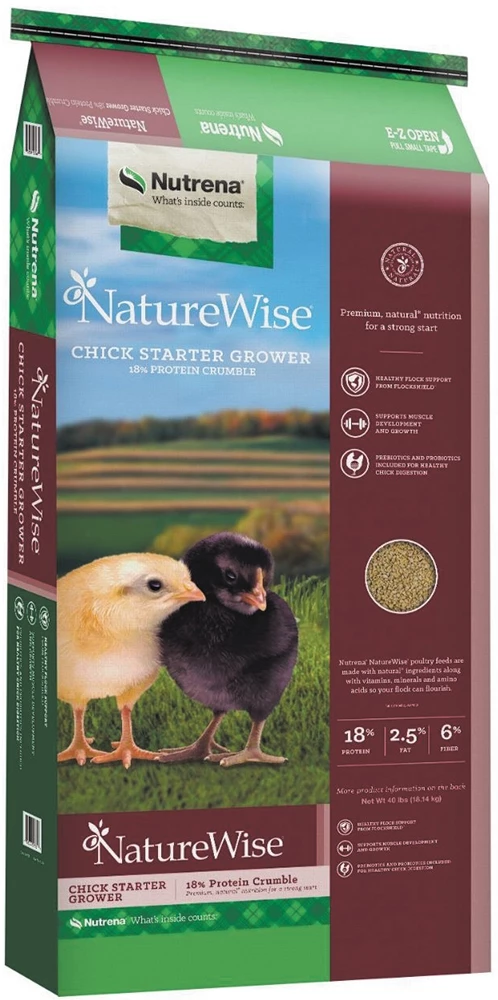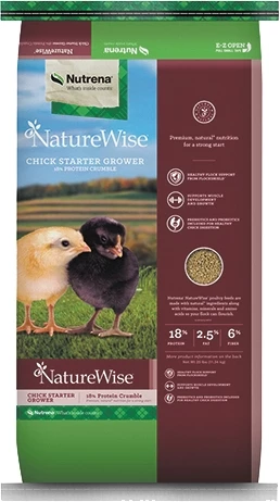 Nutrena Nature Wise Non-Medicated Chick Starter/Grower is a complete, nutritious vegetarian chick diet-no need for supplementation. It is fortified with vitamins and minerals to support healthy growth and development. No added hormones.