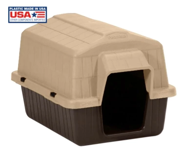 Welcome your dog home sweet home with the Aspen Pet® Petbarn® 3. Give your dog a warm, dry, safe space with this sturdy, durable plastic barn-shaped home that features an extended roof rim over the door to divert rain and a raised interior floor to help keep him dry during inclement weather. The rear ventilation promotes air circulation to keep him cool during hot weather and keep the space smelling clean year-round. The all-plastic construction means it is simple to assemble with no tools required. In addition, it will not rot or fall apart; cannot be infested with fleas, ticks or other pests; and is simple to clean with a garden hose and a sturdy brush. Made in the USA and simple to assemble with no tools required.