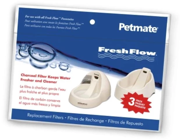 Petmate® Fresh Flow Replacement Filters use charcoal to keep your pet’s water fresh and clean.