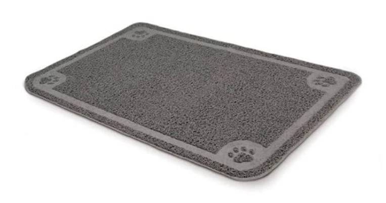 This litter pan mat features a soft, rubberized construction that is easy on paws. Its webbed design traps litter scatter.