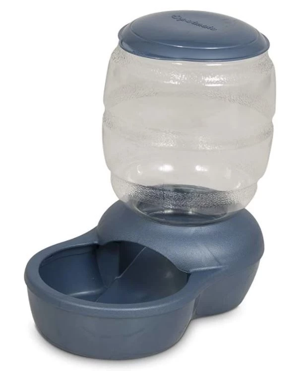 The Petmate Replendish Feeder provides pets with a delicious supply of dry food with less refills required for pet parents. Microban Antimicrobial Product Protection helps prevent the growth of stain and odor-causing bacteria in the base. For pet parents with busy lifestyles, the Replendish feeder ensures pets have easy access to an extended supply of fresh food. The wide-mouth food dish is spill-resistant to keep floors clean as pets eat. Pet parents can scoop or pour food directly into Replendish top load feeder by removing the easy-snap lid, making refills even more convenient. The Petmate Replendish Feeder is available in four sizes for pets large and small, and the base and bottle screw apart for convenient cleaning. With a variety of colors to choose from, the Petmate Replendish Gravity Feeder makes a charming addition to any room of the home.