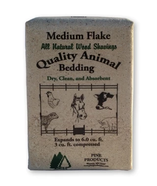 Medium Flake shavings are great for quick and long lasting absorption. These bags have an average weight of 37-39 lbs per bag and are 3.0 cubic feet, 45 bags/pallet, 990/full load. This product works great for: stables, cattle-dairy, poultry and hogs.