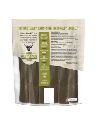 Rice, glycerin, dried venison, mono and dicalcium phosphate, calcium carbonate, natural smoke flavor, preserved with mixed-tocopherols, natural flavor.