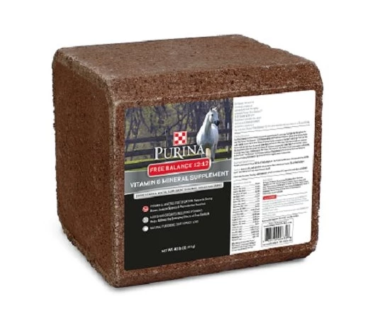 The Purina 67113 Free Balance 12:12 Vitamin and Mineral Horse Supplement Block is ideal for horses who are not receiving a balanced concentrate feed. The highly palatable horse block supplement provides the added vitamins and minerals needed to balance a pasture or hay-only diet. This supplement block also features added antioxidants that include vitamin E to help address the negative effects of free radicals.
