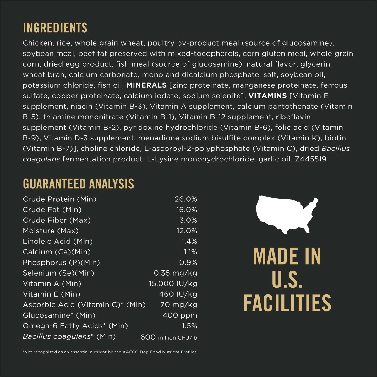 Hard kibble combined with tender, shredded pieces for taste and texture dogs love
