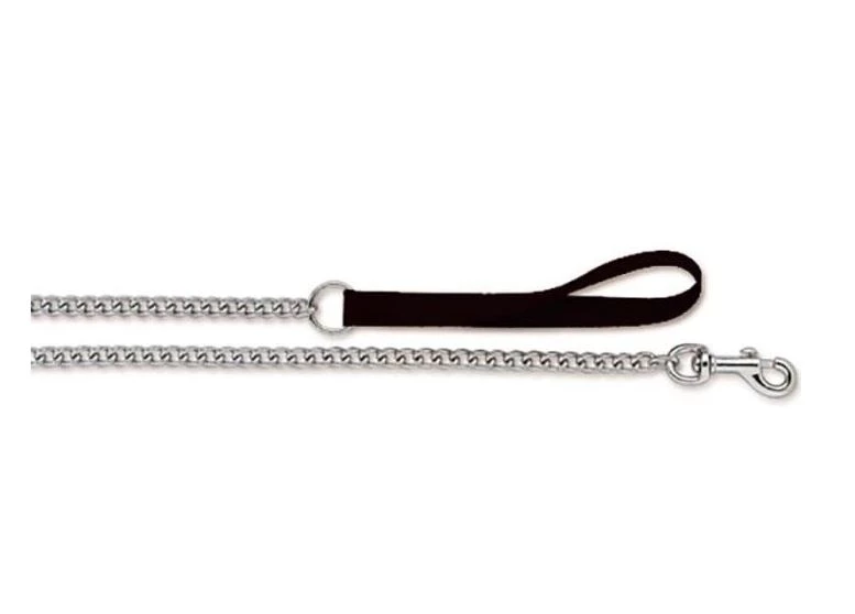 This lead features a medium weight 3.0mm chain with nylon handle. It is rust resistant and has a metal snap closure.