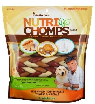 Nutri Chomps is a rawhide alternative dog chew. Made with real chicken and pork skin, making it 100% rawhide-free! Nutri Chomps are high in protein, vitamin & mineral enriched, and GMO free. Not only do our treats offer health benefits, but they also help with keeping teeth clean and breath fresh. Made with real flavoring, Nutri Chomps have naturally delicious ingredients your best friend will love! Not to mention, Nutri Chomps offers a variety of chews for your dog, coming in several different shapes, sizes and flavors.Â