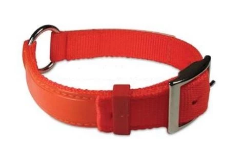 The original T.E. Scott hunting collar. Made with 1″ wide resin treated double-ply nylon, this collar is extra tough. The center O-ring feature helps roll the collar if it gets caught or snagged. It also is ideal for easy on/off attachment of lead.