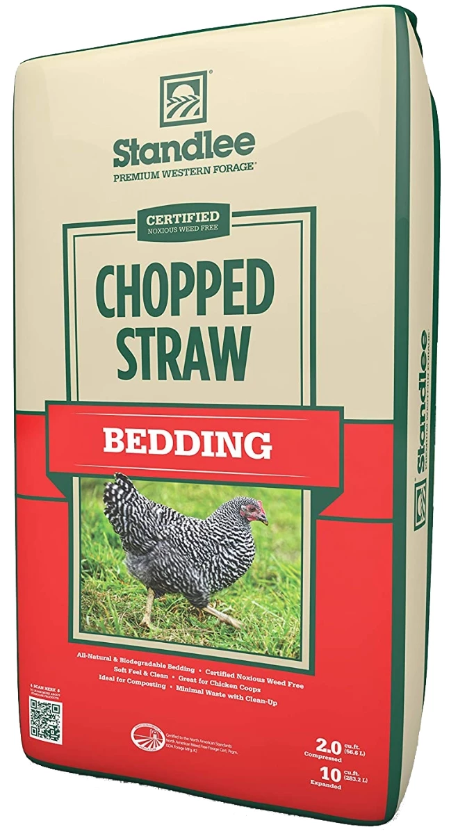 Standlee Premium Western Forage® Certified Chopped Straw is an excellent choice in all-natural and biodegradable bedding for animals including chickens, goats, sheep, rabbits, guinea pigs, dogs and other small animals. This Chopped Straw is chopped into approximately 4″ pieces so consumers only discard soiled straw bedding. Chopped Straw bags weigh approximately 25 lbs. and are Certified Noxious Weed Free.