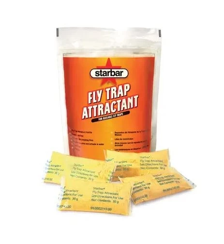 Get rid of problematic flies using the Starbar Fly Trap Attractant Refill. This non-toxic attractant comes in easy to use pouches that dissolves and activates in water. The Starbar Fly Trap Attractant Refill is compatible to use with fly terminator, milk jug trap, captivator fly trap, ½ gallon and gallon sized reusable fly trap.