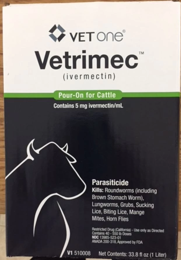 Vetrimec Pour-On endectocide (ivermectin 5 mg/mL) delivers internal and external parasite control for cattle in one convenient, low-volume application. Indicated for effective control of gastrointestinal roundworms, lungworms, cattle grubs, lice, mites and horn flies. Do not use in female dairy cattle of breeding age or calves to be processed for veal. Meat withdrawal: 48 days. Apply along the animal’s topline in a narrow strip extending from the withers to the tailhead.