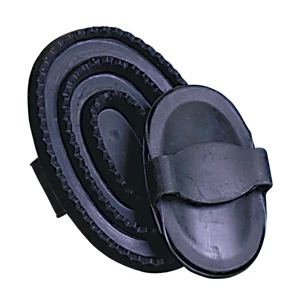 In a larger size, this black rubber curry comb helps remove mud and loosen matted dirt.