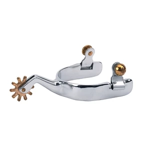 •Stainless steel spur, polished finish, with brass-plated rowel and buttons.