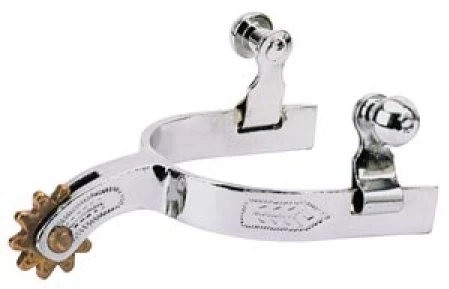 This chrome plated youth spur features an engraved band, 1-1/4″ shank, 1/2″ band and 10 point rowel.
