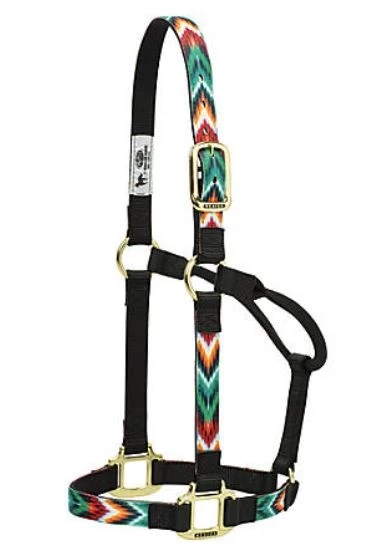 The Weaver Leather Non-Adjustable Horse Halter with Nylon Chevron has fashion-forward designs. These halters are made with premium materials and attention to detail such as fashion hardware and colors. This horse halter features box-stitching at stress points for added strength and a rolled throat for comfort on your horse.